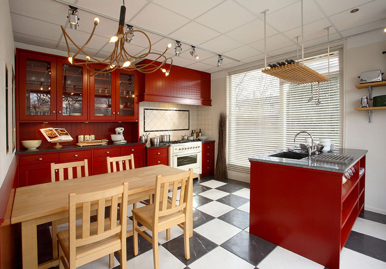 Элитная немецкая кухня в традиционном стиле Gelderland фасады из красного ламината